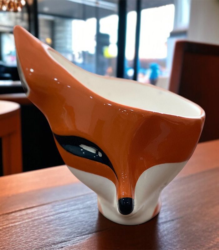 Handcrafted ceramic mug shaped like a fox — playful, modern, and full of warm energy for your cozy coffee moments.